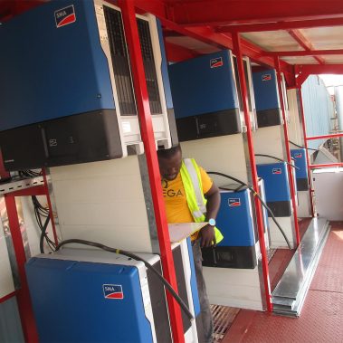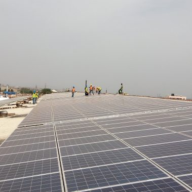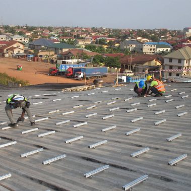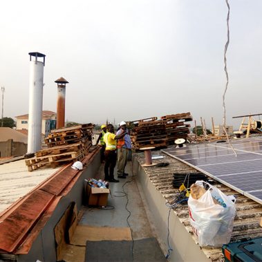 Accra, GhanaThis project dealt with the implementation of a hybrid solar rooftop system: the plant shall operate parallel to the grid as well as with Diesel generators. Special attention was needed to avoid any disturbance of the plant operation and to ensure a continuous stable feed-in of solar power. This implies a professional and integrated lightning concept for the solar plant itself but also for the production hall.