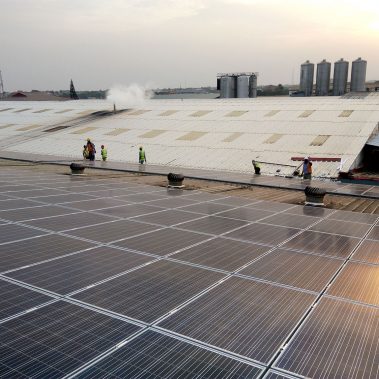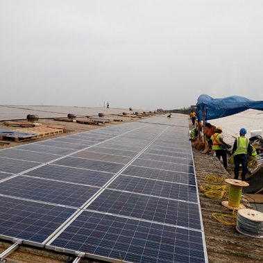 This project dealt with the implementation of a hybrid solar rooftop system: the plant shall operate parallel to the grid as well as with Diesel generators. Special attention was needed to avoid any disturbance of the plant operation and to ensure a continuous stable feed-in of solar power. This implies a professional and integrated lightning concept for the solar plant itself but also for the production hall.