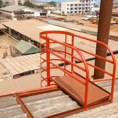 Bamboo has excellent statical properties. Also, it is by far more affordable than steel. However, bamboo is not utilized in an engineering manner in Ghana and every construction detail had to be designed especially for this intended purpose. And certainly the construction had to satisfy esthetical means: being located in the entrance area it is the showpiece of the company.